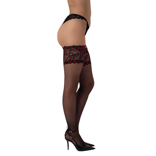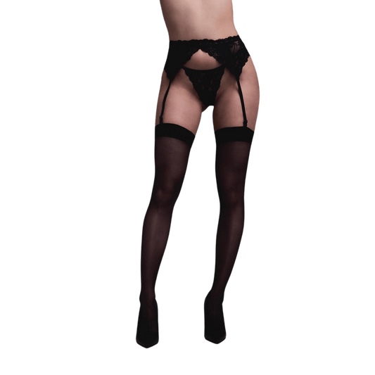 Bas autofixants noirs voile et jarretière dentelle - Passion
